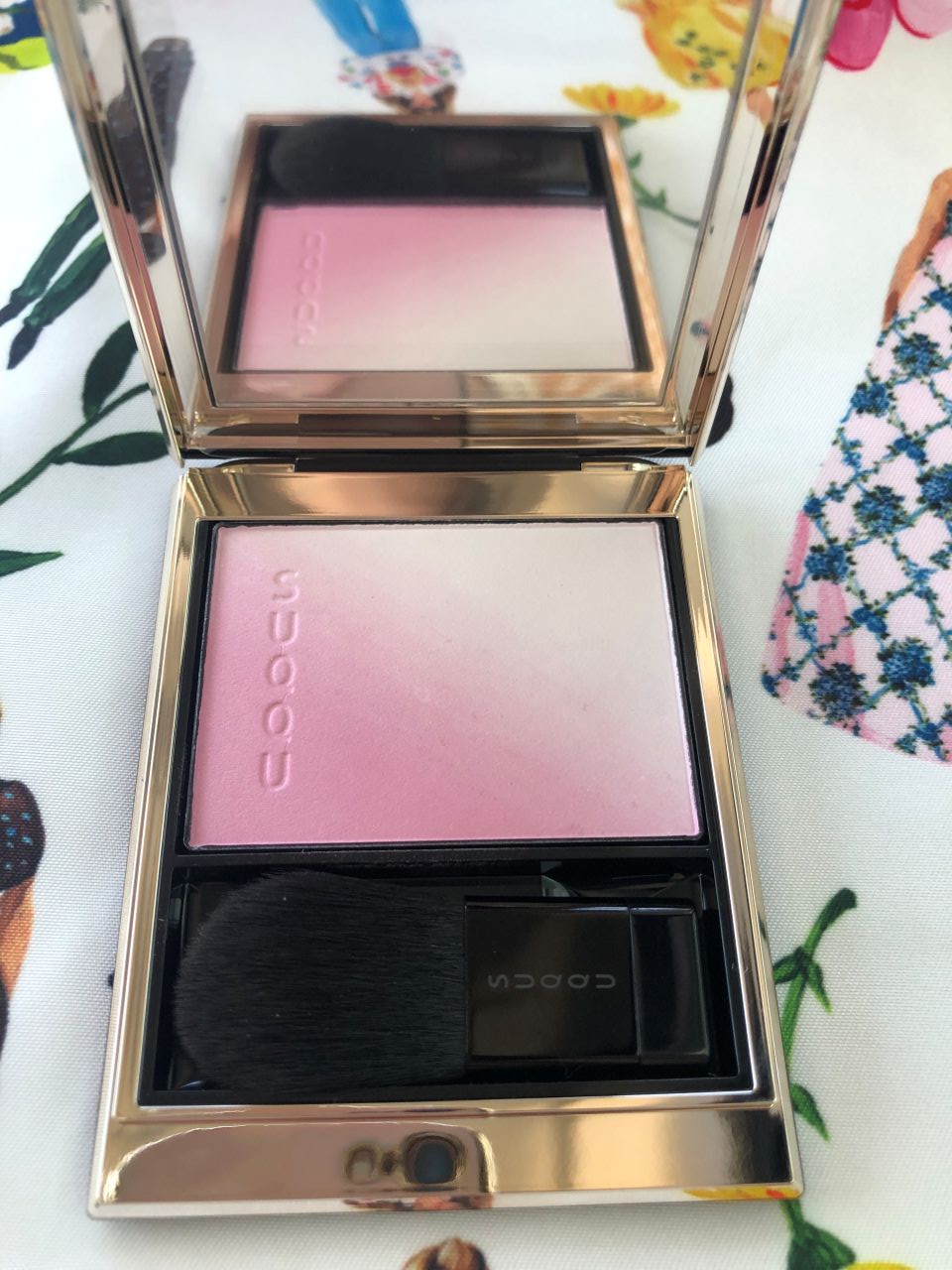 ずっと見てられるし、こんなに綺麗なもの、使えないよ!と思い、数日寝かせておいていました。でも今家にあるチークはブルべ夏向きではないし、ブルべ夏メイクをするために買ったんだから使わないのはやっぱり勿体無いじゃないですか。ということで満を持してつけてみました。